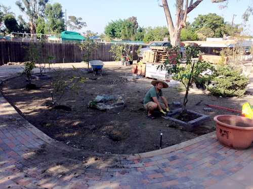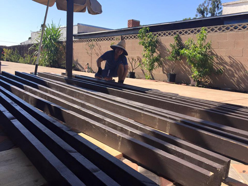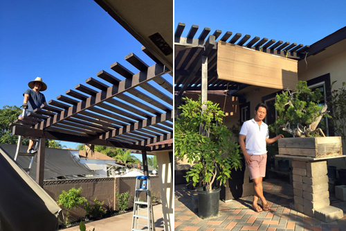 Không chỉ tự mình chăm cây, người chủ vườn vốn là công tử Hà Thành còn tự sửa sang cho khu vườn. Anh đi lấy gỗ, sơn để làm thành mái che cho phần hiên nhà.
