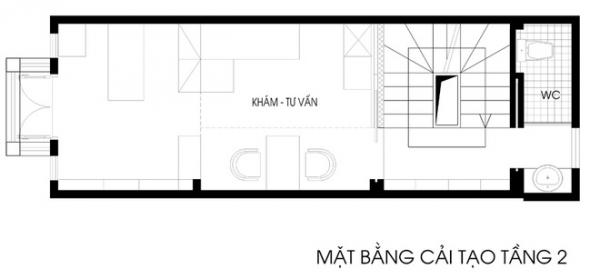 Chủ nhà là bác sĩ nên có nhu cầu sử dụng một phần ngôi nhà làm phòng khám tư. KTS Nguyễn Thành Nhân đề xuất giải pháp phân bố các không gian phù hợp chức năng theo từng tầng riêng biệt.