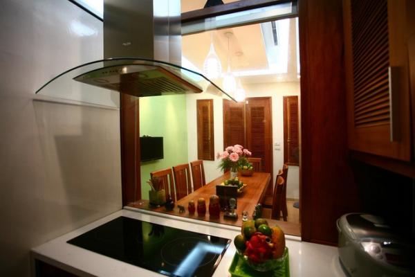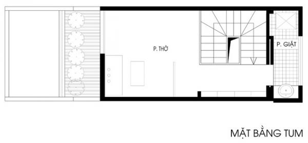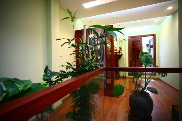 Phòng thờ được đặt trên tầng tum ngăn cách với khu vực cầu thang bằng bức bình phong gỗ đậm chất Á Đông. Cây xanh được bố trí trong phòng hợp lý làm không gian thêm sinh động