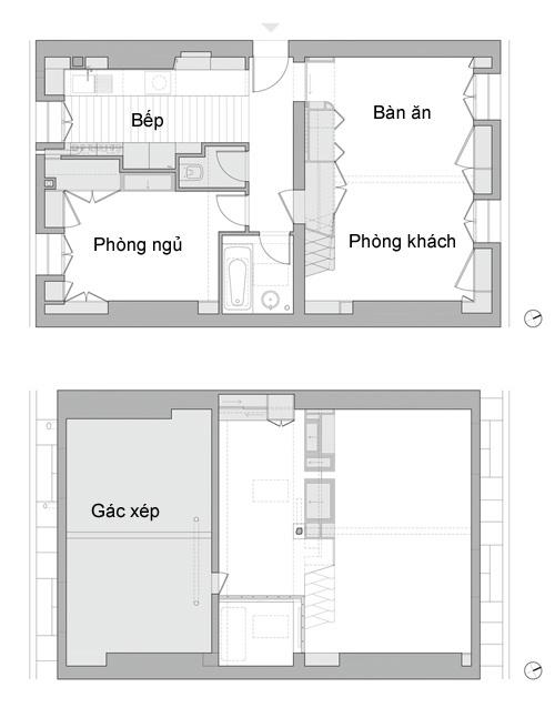 Trên gác xép có thêm một phòng ngủ có thể nhận ánh sáng từ mái nhà cũng như thông qua khe thoáng.