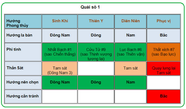 Người có quái số 1 nên kê bàn hướng Đông Nam, Đông và Nam còn người có quái số 2 nên kê bàn hướng Tây và Tây Nam.