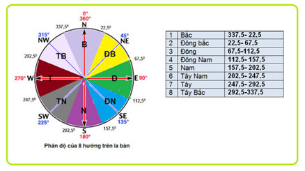 Xác định các hướng theo độ chia trên la bàn