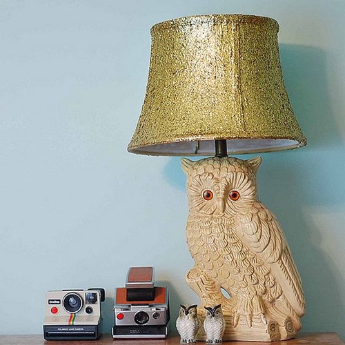 Chiếc đèn ngủ hình con cú phủ lớp nhũ vàng ấn tượng.