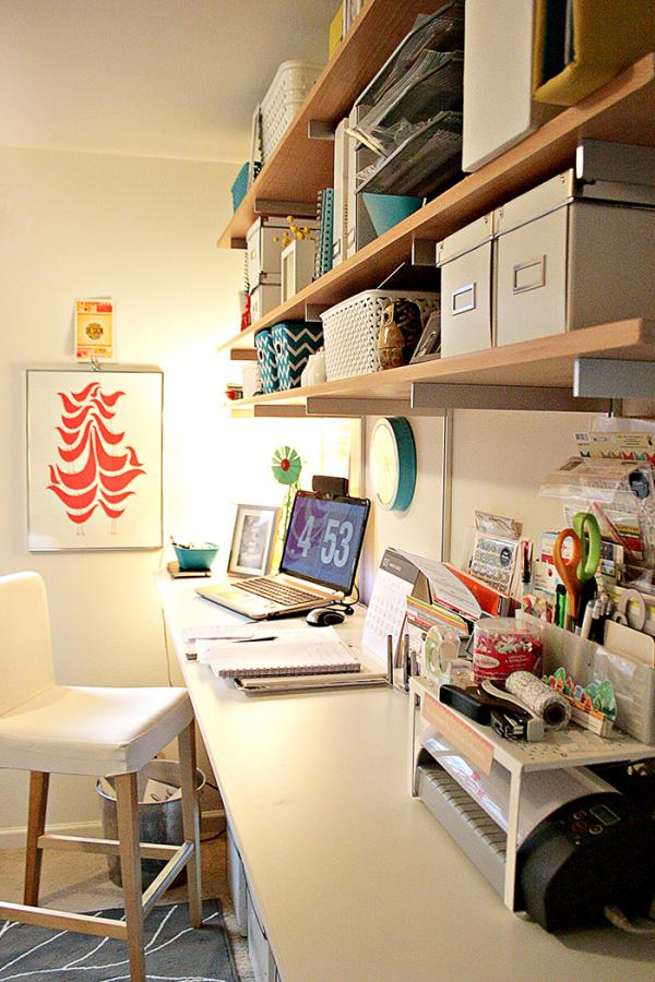 Chỉ cần 2 giá sách kê dưới, bạn có thể tạo thành một chiếc bàn đứng để làm việc.