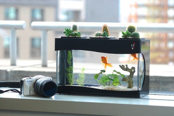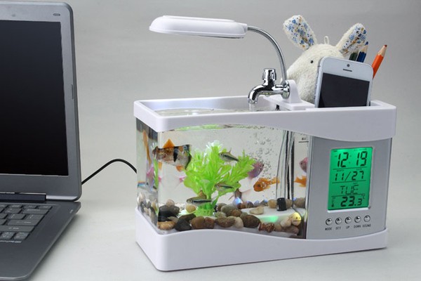Những mẫu bể cá tích hợp như thế này cực tiện lợi cho bàn làm việc nhỏ.