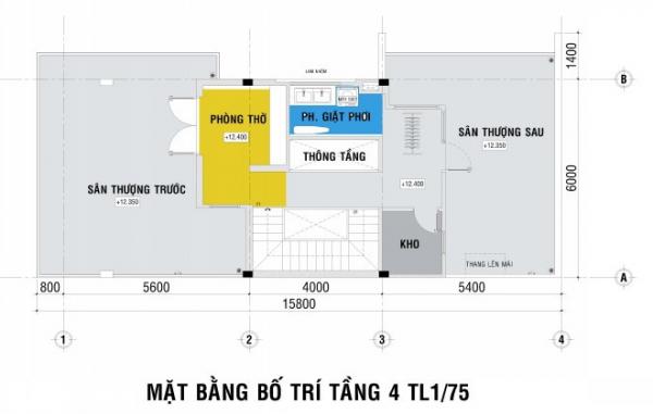 Dựa trên nhu cầu sử dụng không gian của gia đình, kiến trúc sư Phạm Ngọc Thiên Ân hướng dẫn như sau: Anh có thể bố trí tầng một gồm garage để xe, phòng khách, sân bao bọc, sàn nước. Tầng lửng là bếp và phòng ăn với sức chứa 4 bàn tiệc. Tầng 2 gồm phòng ngủ master, phòng học, làm việc, phòng ngủ khách. Tầng 3 bố trí 2 phòng ngủ của các con. Tầng 4 là phòng thờ, khu vực giặt phơi, sân thượng trước và sau.